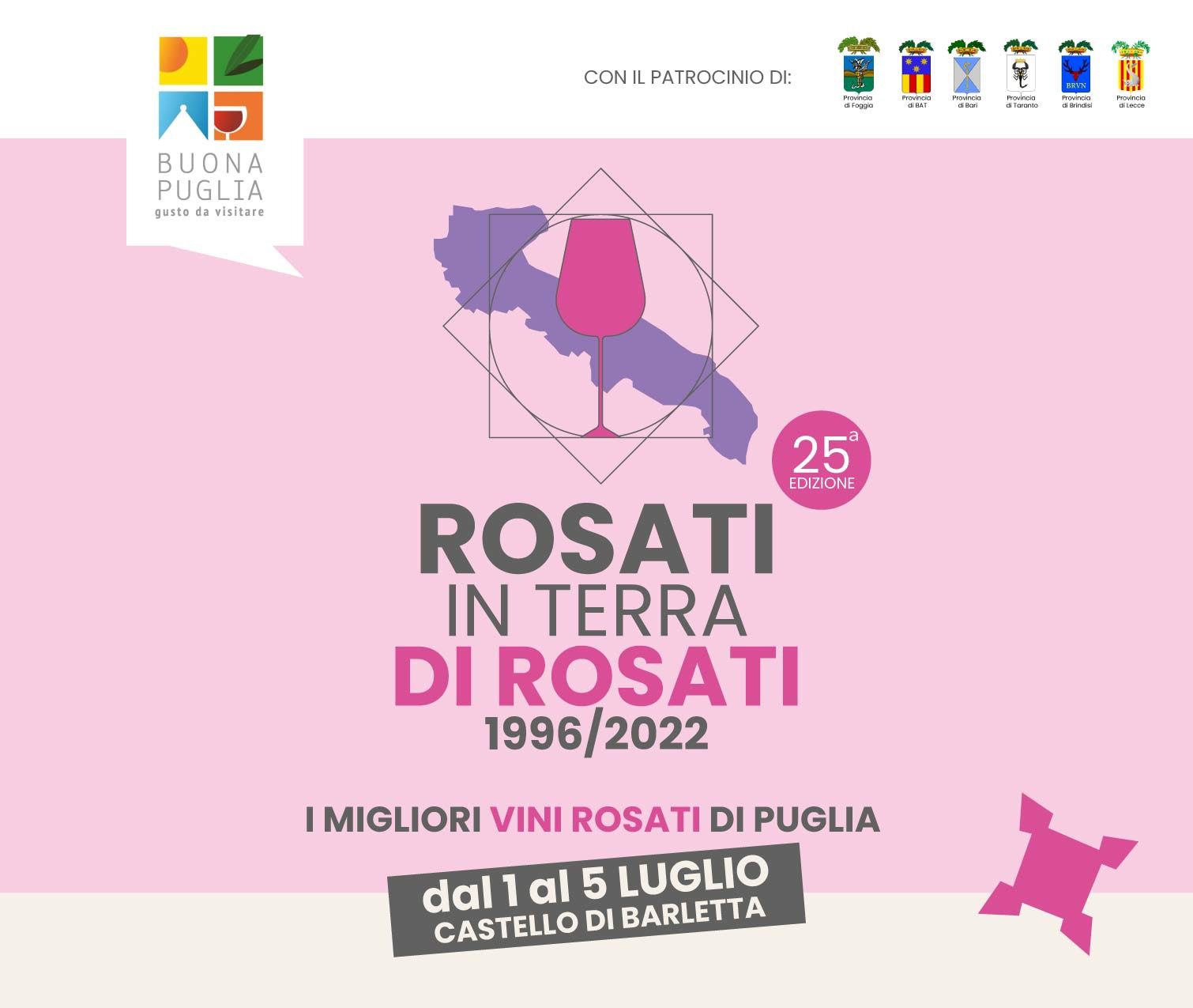 Nell’ambito del Buona Puglia Food Festival, la kermesse che dal 1 al 5 luglio prossimi presenta nello splendido Castello di Barletta (BT) il meglio dell’agroalimentare pugliese, grande spazio sarà dedicato ai vini, per la precisione ai vini Rosati, una delle espressioni più raffinate dell’enologia regionale. Vitigni, terreni, temperature, e naturalmente la storia enologica della Puglia, fanno sì che il Rosato pugliese sia considerato tra i migliori al mondo.